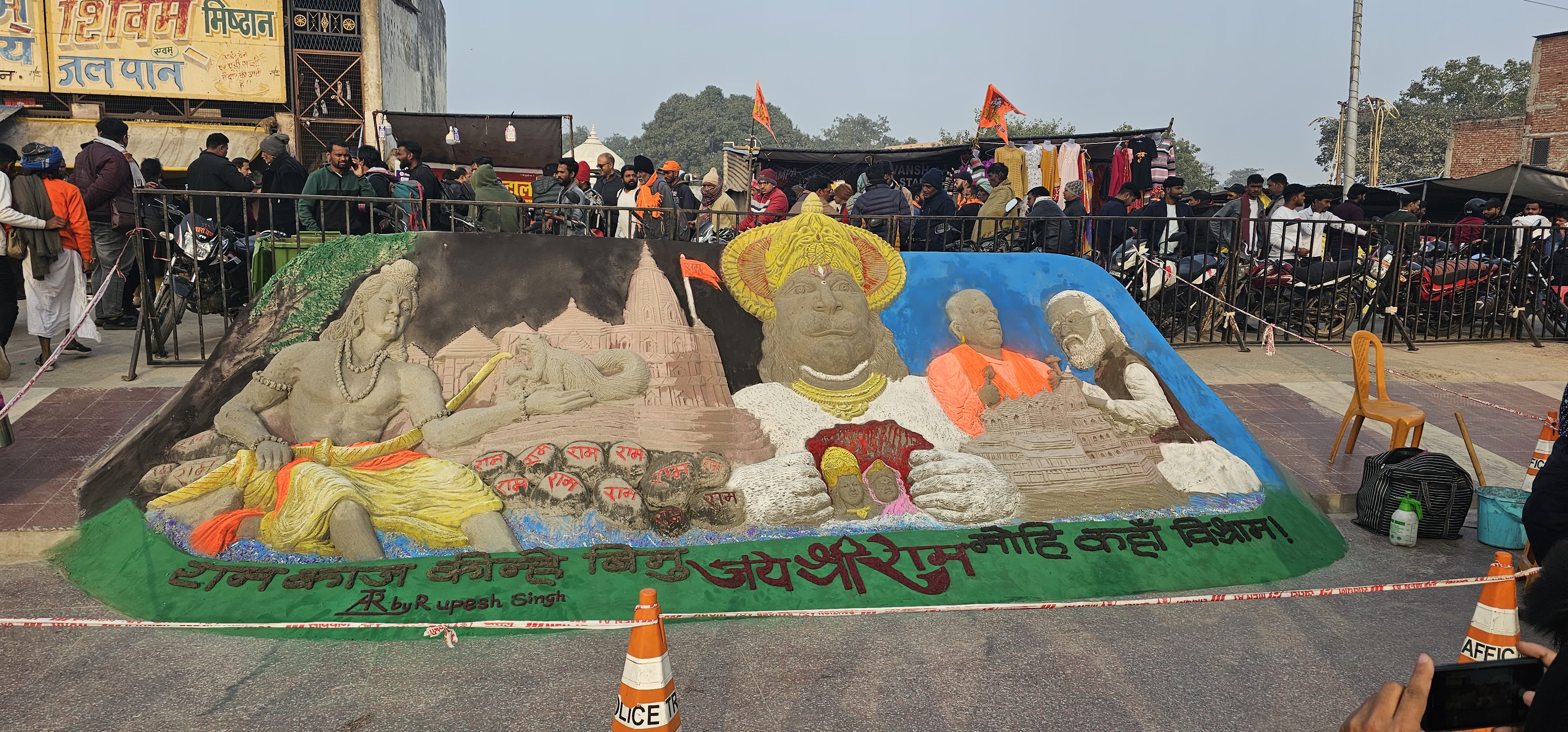 फ्लाइओभरमा सडक बत्तीहरू भगवान राम चित्रण गर्ने कलाकृतिका साथै धनुष र बाणका कटआउटहरूले सजाइएको छ भने ल्याम्पपोस्टहरूले परम्परागत ‘रामानन्दी तिलक’ मा आधारित डिजाइनहरू बोकेका छन् । अभिषेक समारोहको लागि अयोध्यामा सबै सुरक्षा अंगको समन्वयमा उच्चतहको सुरक्षा प्रबन्ध गरिएको जनाईएको छ । १० हजार सीसीटीभी क्यामेरा र आर्टिफिसिएल इन्टेलिजेन्सको सहायताले ड्रोनहरू पनि कार्यक्रमस्थलमा तैनाथ गरिएको भने सादा पोशाकका सुरक्षाकर्मी सहित प्रहरी परिचालन गरिएको छ ।