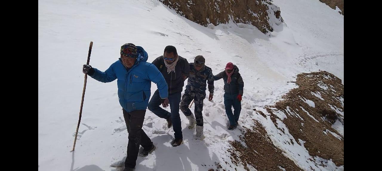 नाम्खा गाउँपालिका–५ नारा लेकको हिउँमा फसेका सोही गाउँपालिकाका ओभरसियर छेपाक लामासहित तीन जनाको उद्धार गरिएको हो।