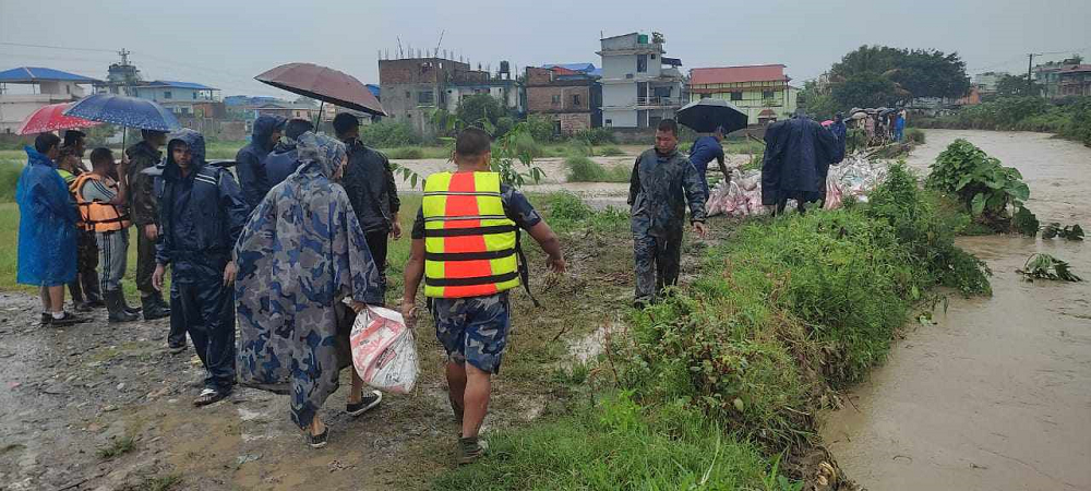 बस्तीमा खोला पसेपछि जोखिम रहेका घरपरिवारलाई नेपाली सेना, सशस्त्र प्रहरी, नेपाल प्रहरी र नगर प्रहरीसहितको टोलीले सुरक्षित स्थानमा स्थानान्तरण गरेको छ ।